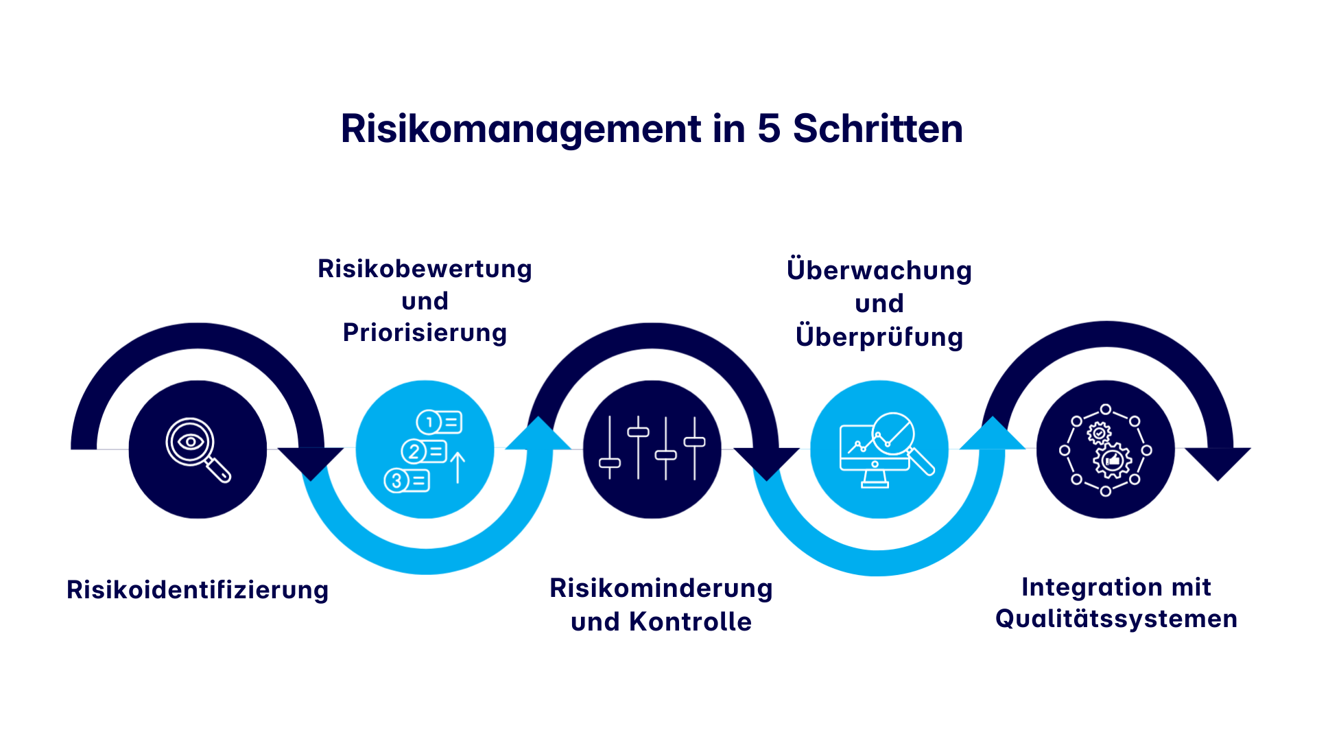 Der Aufbau eines Systems für das operative Risikomanagement beginnt mit der Identifizierung potenzieller Risiken in kritischen Prozessen, Systemen und Anlagen, wie z. B. Geräteausfällen, Datenfehlern oder Umgebungsbedingungen, und der Bewertung ihrer Auswirkungen auf die GxP-Konformität und Datenintegrität. Ein robustes, risikobasiertes System umfasst fünf Schritte: Risikoidentifizierung, -bewertung und -priorisierung, -minderung, -überwachung und -integration in das Qualitätssystem.