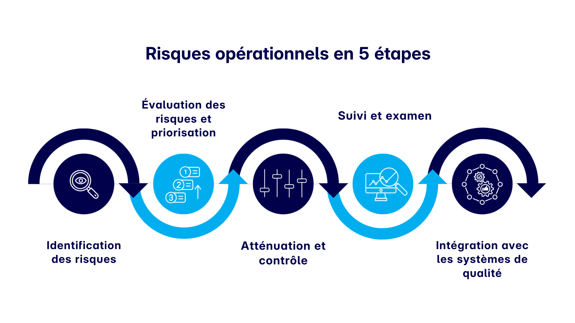 Développer un cadre de gestion des risques adapté à vos opérations garantit l’efficacité et l’évolutivité des efforts de conformité. Un cadre de gestion des risques opérationnels solide comprend généralement :